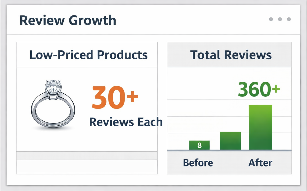 · All targeted low-priced listings reached 30+ reviews